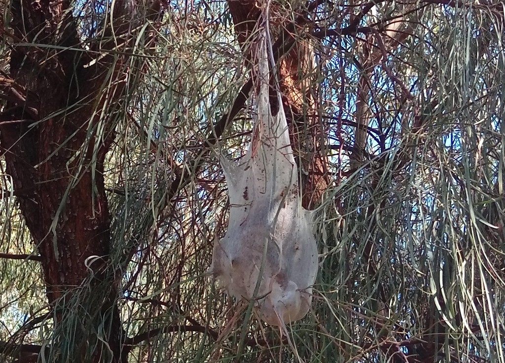 美國論壇Reddit日前一張令人毛骨悚然的照片引起熱議。外國網友SelmaFudd於16日在澳洲維多利亞西北部米爾杜拉(Mildura)濕地散步時,抬頭碰巧看見樹上掛著一個激似白色塑膠袋的「垃圾」,他便想將它取下丟棄。不料,在他靠近之後,才驚覺這很有可能是個超大型蜘蛛網,嚇得他趕緊拍照PO網求證。