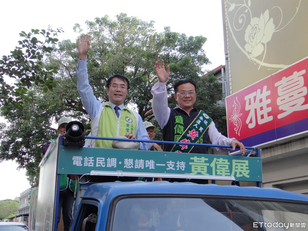 民進黨台南市議員選舉初選民調,進入倒數關鍵期,民進黨台南市長參選人黃偉哲19日陪同賴系子弟兵、中西區北區市議員參選人黃偉展車隊遊行拜票,懇託選民在4月23日至27日晚上6時至10時,一定要在家「顧電話」,為黃偉展拚民調。