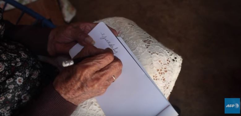 ▲參加「掃盲計劃」後,帕拉席歐現在可以寫信給男朋友了。(圖/翻攝自YouTube)