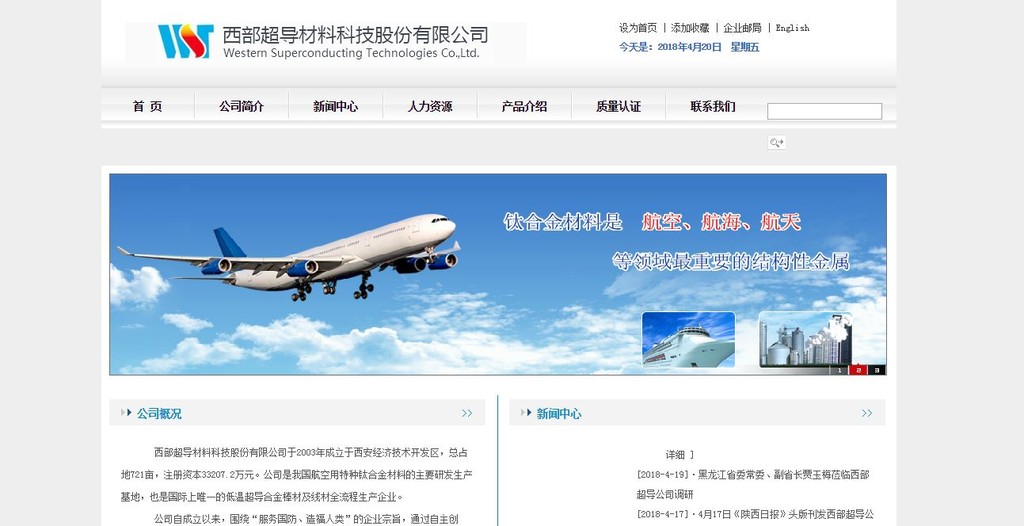 根據了解,「西部超導材料公司」是西北有色金屬研究院的子公司,也是中國「軍用」稀有金屬科學研發生產基地,曾經榮獲「高技術武器裝備發展建設工程突出貢獻獎」、「國防科技創新團隊」等獎項肯定。因為從成立之初,「西部超導」就定位於「國內空白、國際先進」,主要產品均為大陸急需產品,例如高端鈦合金等產品,由於有所貢獻,解放軍空軍副司令員張洪賀中將在2016年也曾前往視察。。