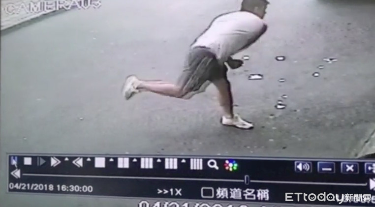 男子下手後再以步行方式走至車道口,騎乘重機車離去,經檢視現場,大門入口處大理石地板小面積燻黑,無人傷亡、無其他財損。