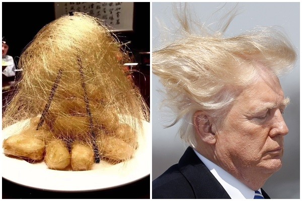 美國總統川普過去屢因「髮型」話題登上媒體版面,就連他母親「半屏山」的造型也被網友翻出來。不過,現在有大陸網友把川普的金黃色髮絲與知名甜點「拔絲」相比擬,更開玩笑把這道甜點取名「拔絲川普」,笑翻網友。