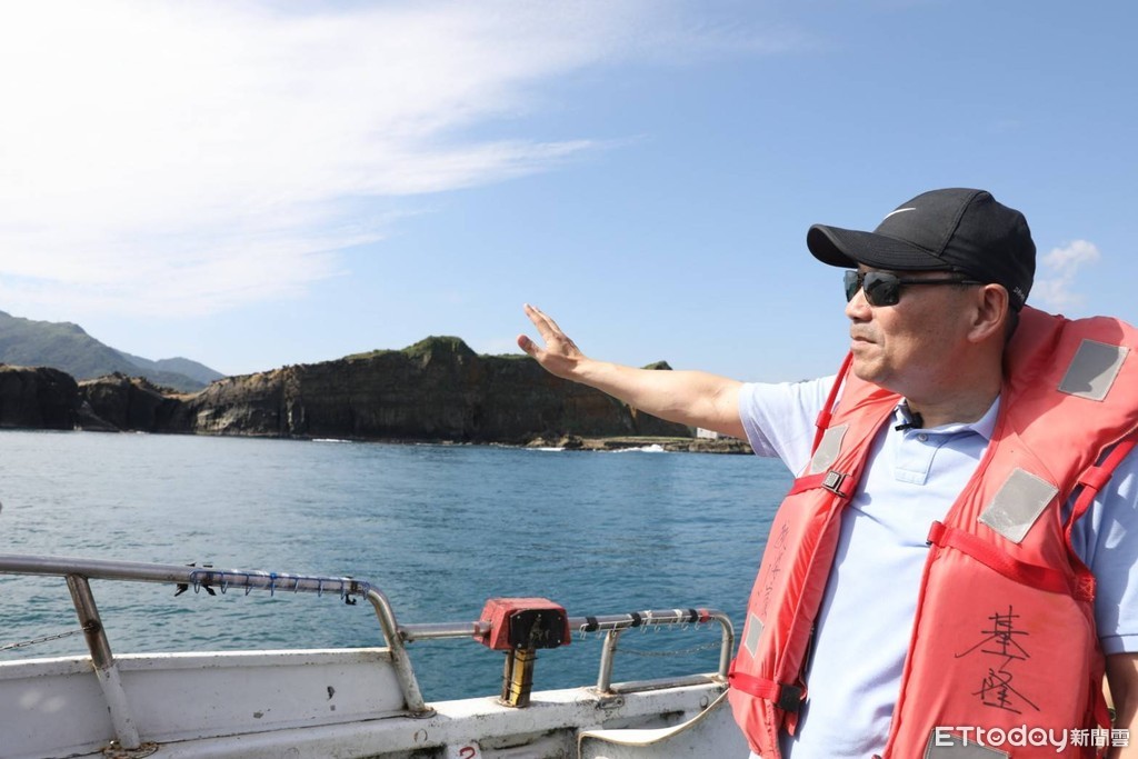 ▲侯友宜從海上勘查深澳電廠以及象鼻岩東北角自然景觀。(圖/侯友宜辦公室提供)