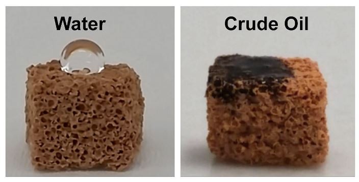 ▲因為「超級海綿」的兩種組成物都屬疏水性,所以能準確吸附海面上的污油。(圖/翻攝自Flinders University官網)