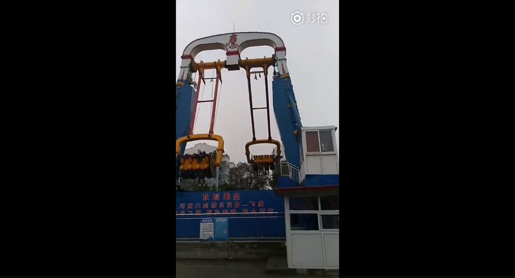 ▲河南省西湖公園發生意外,遊樂設施安全扣鬆脫,導致一名男子墜落身亡。(圖/翻攝自西安妖精的秒拍)