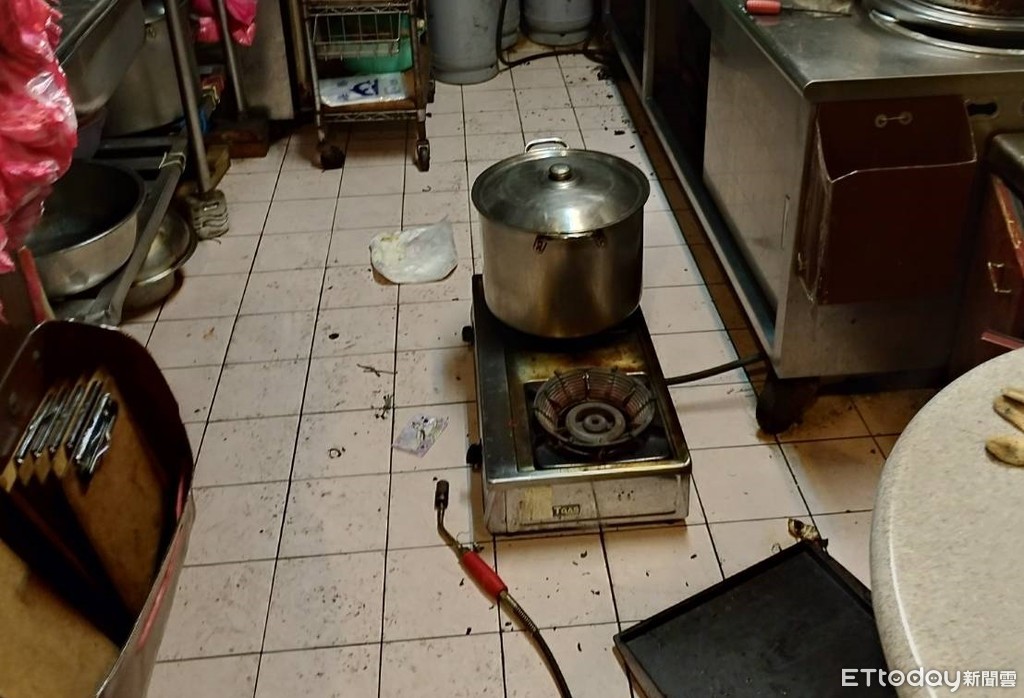 ▲新北永和一牛肉麵店瓦斯管線脫落,導致老闆一家3口皆灼傷送醫。(圖/記者林煒傑翻攝)