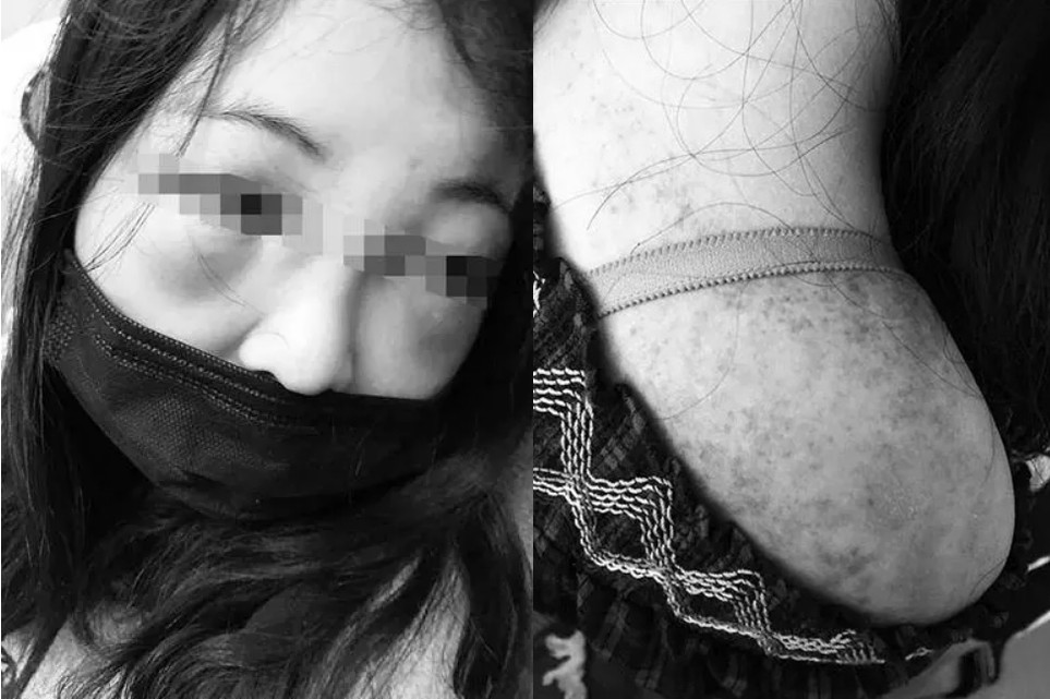 ▲女子被打到雙頰紅腫,身上滿是瘀傷。(圖/翻攝自大陸網站)
