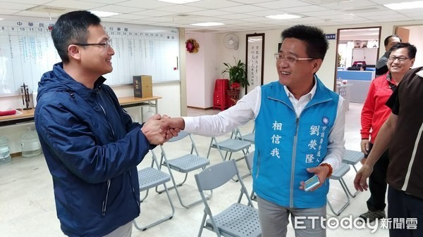 ▲劉熒隆(右)表現風度,向勝出的林昭賢致賀。(圖/國民黨桃園市黨部提供)