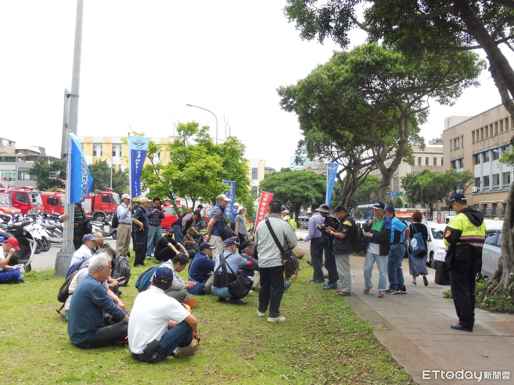 行政院部分,正門戒備森嚴,年改團體約70人聚集到北平東路的後門,現場開始訂起了便當,指揮官則是要求大家席地而坐,許多退休軍官自備小板凳,以及綁著護腰就著草地休息,暫時沒有多餘的動作。