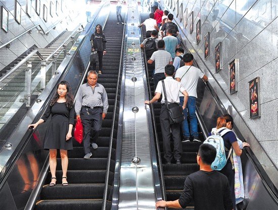 近日,廣州地鐵出於安全考慮不再提倡「左行右立」。廣州地鐵表示,「左行右立」使扶梯受力不均,致扶梯頻現故障,加之在移動扶梯上走動不安全,建議乘客儘量不要行走。(羊城晚報)