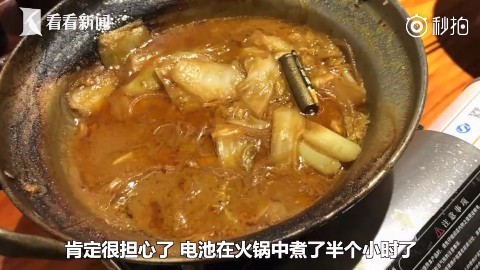 ▲吃火鍋吃出電池。(圖/翻攝自看看新聞秒拍,下同)