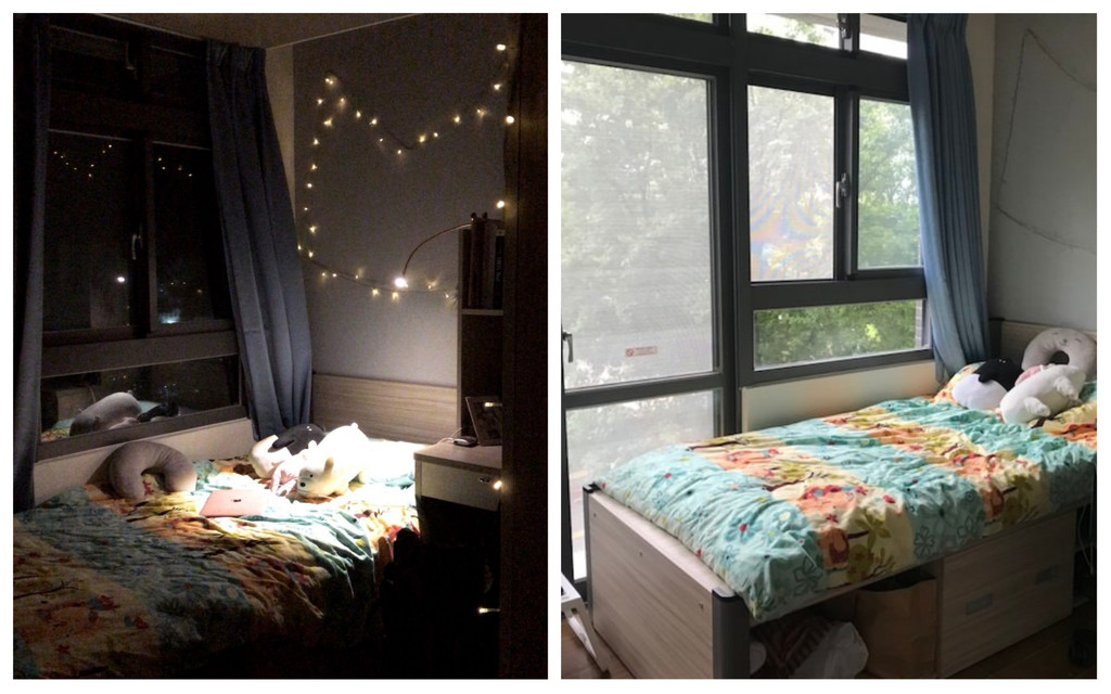 ▲女大生表示,床旁邊有大片落地窗,完全就是夢寐以求的房間。(圖/翻攝DCARD)