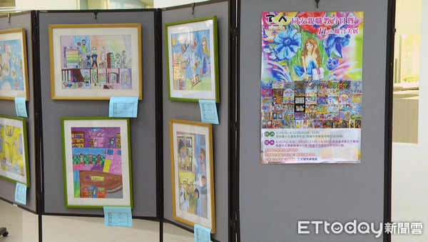 ▲▼桃園區同安國小親師生聯合美展,於桃園市立圖書館埔子分館二樓展出。(圖/北健提供)