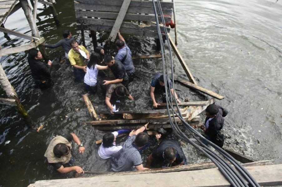 菲律賓三寶顏市(Zamboanga City)一群官員日前視察一座木橋時,橋突然間坍塌,導致市長克里馬柯(Beng Climaco)、眾議員羅布列加特(Celso Lobregat)及其他地方官員全都掉入海中。所幸岸邊海水不深,官員們只受到輕傷。