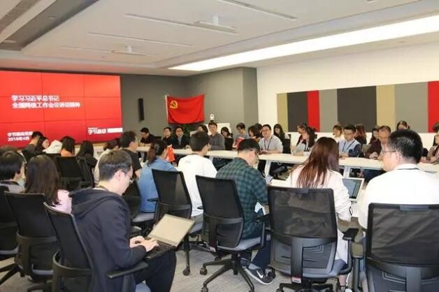 ▲北京字節跳動科技有限公司(今日頭條)員工認真上專題黨課。(圖/翻攝自澎湃新聞)