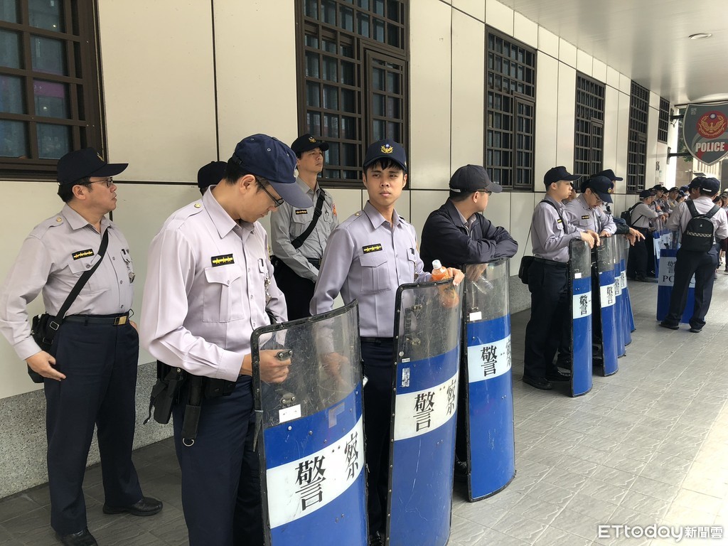▲為防止到場聲援的抗議民眾有「意外」舉動,大批警力舉盾嚴陣以待。(圖/記者趙永博攝)