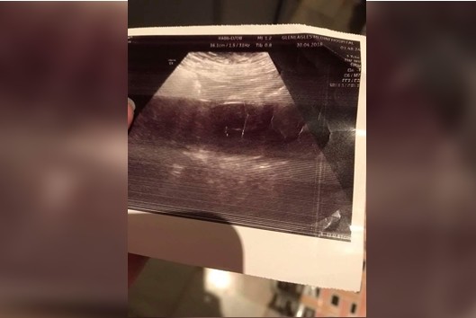 ▲原PO拿著醫師印出她滿肚子「風」的照片,非常無言。(圖/翻攝爆怨公社)