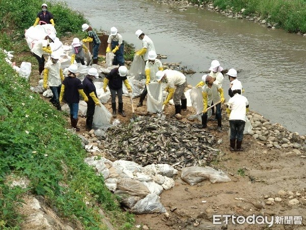 ▲並將魚屍集中清運,暫時疏解沿岸居民連日飽受惡臭空氣。(圖/丘姓民眾提供)