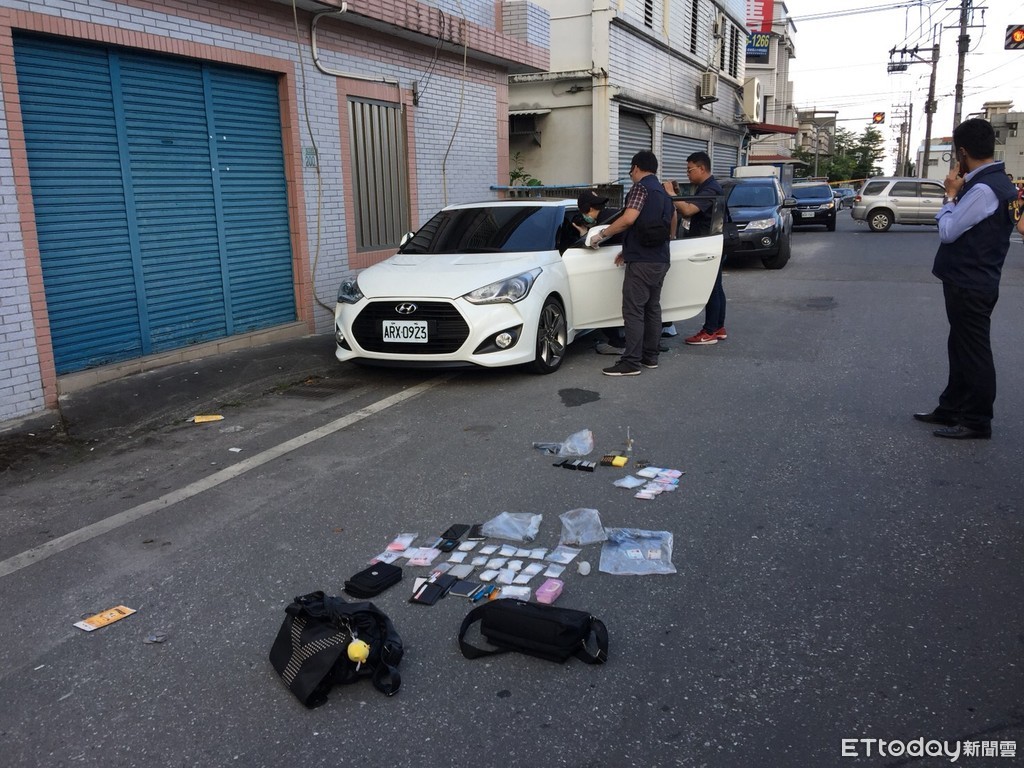 ▲花蓮縣刑警大隊在毒嫌所駕駛車內採證,並起出相關毒品 。(圖/記者王兆麟攝)