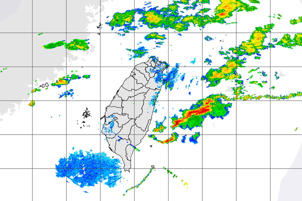氣象局表示,今鋒面通過,北部及東半部降雨機率仍偏高,中南部則為多雲時晴偶陣雨的天氣型態、午後的山區降雨機率較高。