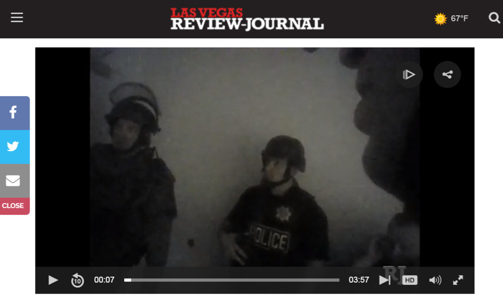 畫面顯示,當時警方對著驚慌逃命的民眾大喊,「你們這群人,趴下!你們往另一邊走,離開這裡!這邊有人開槍,(你們)往另一邊走!往另一邊走!」在此同時,現場不斷傳出槍響,員警也互相提醒,必須要壓低身體前進,而他們最後也確認槍聲就是從曼德雷灣賭場度假村(Mandalay Bay Resort and Casino)某間窗戶傳出來的。