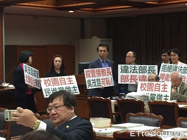 立委陳學聖表示,拔管案風波持續延燒,今天立法院教文與社福衛環委員會聯席審查「幼兒教育及照顧法修正草案」,教育部長吳茂昆受邀列席,但他與其他黨籍立委深深感覺這樣的部長,他們沒有辦法承認他的合法性和高度。因此舉牌高喊:「吳茂昆下台!還有臉講別人?」。