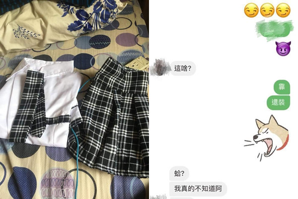 王姓男網友在臉書不公開社團「爆廢公社」貼出多張對話截圖,及一套女用制服,無奈大罵「馬的,到底是誰把情趣制服丟我衣櫃?今天整理房間看到,以為是女友要給我驚喜」。從對話截圖中可以看到: