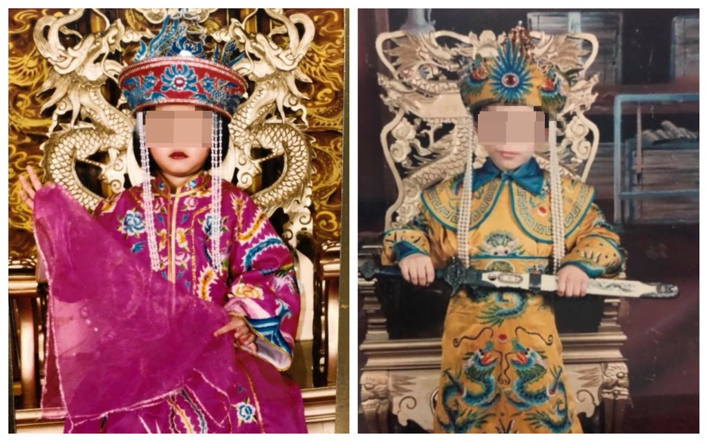 一名女網友在臉書社團「爆廢公社」表示,「聽說差不多年紀的都有這種畢業照,我76年次,還有誰也有這種照片?」只見網友貼出的幼稚園畢業照中,她穿上繡花的古裝,頭上戴著2串珠從旁垂落的頭冠,嘴上還擦著大紅色口紅,整個人被打扮成古代皇后的樣子,不僅如此,右手斜拿著一條手絹,坐在了金黃色的龍椅上。