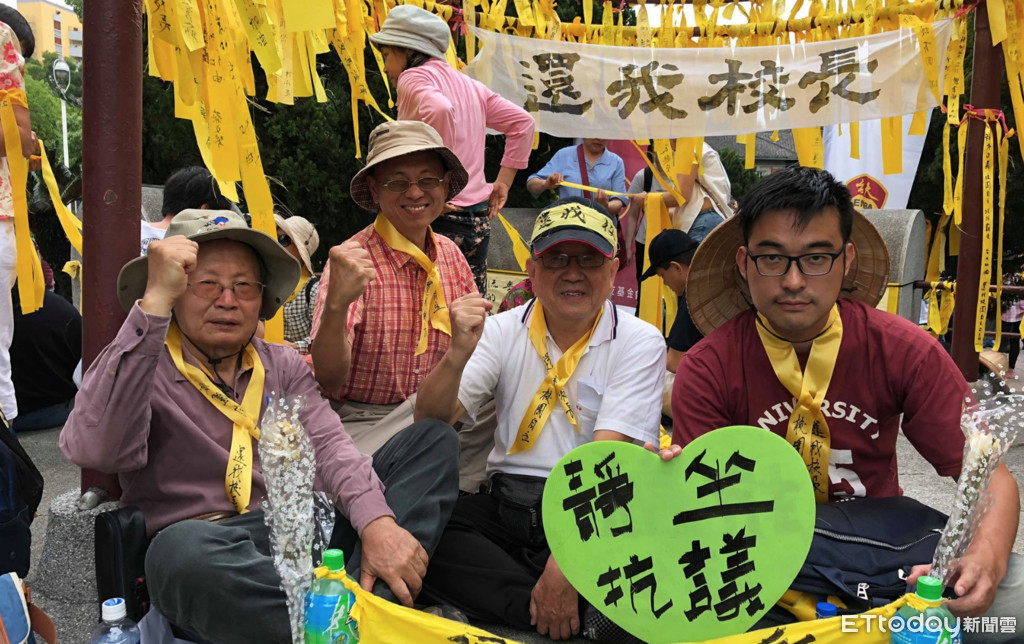 ▲4名校友在傅鐘底下靜坐抗議。(圖/記者闕雁琳攝)