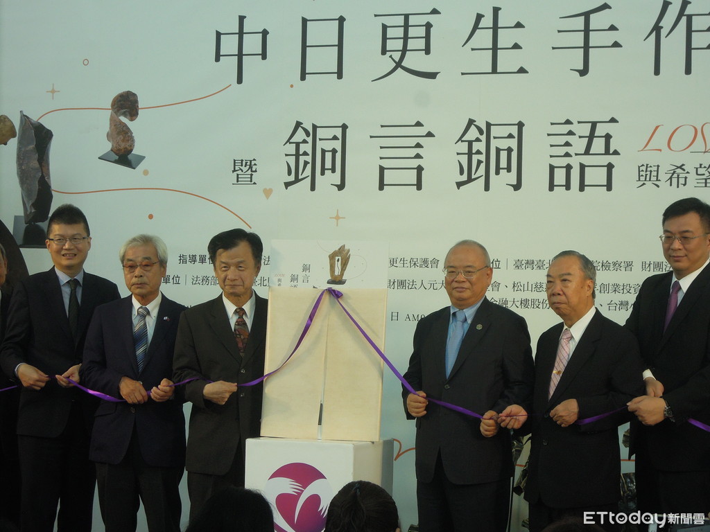 ▲法務部長邱太三(圖中左)參加銅言銅語聯展開幕式。(圖/記者吳銘峯攝)