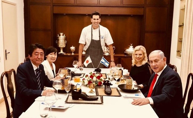 安倍晉三2日與內唐亞胡進行了高層會議,隨後被邀請至總統官邸共進晚餐。當晚負責烹調高級餐點的是以色列知名主廚塞格夫(Segev Moshe)。但在甜點環節,塞格夫為安倍夫婦準備的巧克力被放在了兩隻男鞋裡端上桌,這讓安倍夫婦十分尷尬,因為在日本文化中,鞋子被認為是最低下的,進入室內幾乎都要換鞋。此舉被外界指責是對日本首相的冒犯。