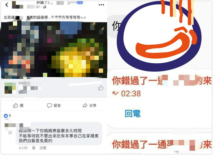 因此,他們在店家粉專留下評論,抱怨「出菜速度慢,飯煮得超級慢...,永遠都在等等等等=.=。」沒想到此舉徹底惹怒老闆,不但直接在評論下回覆,「麻煩問一下你媽媽煮飯要多久時間,不能等待就不要出來吃,有本事自己在家裡煮,我們白飯是免費的。」