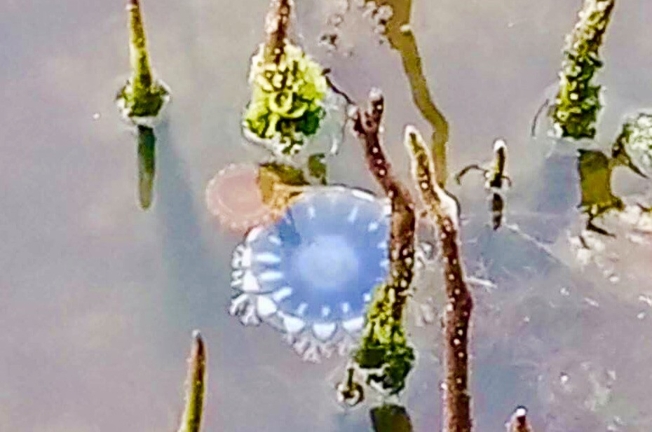 ▼溝渠內,藍水母右側還有多隻活潑可愛的小水母。