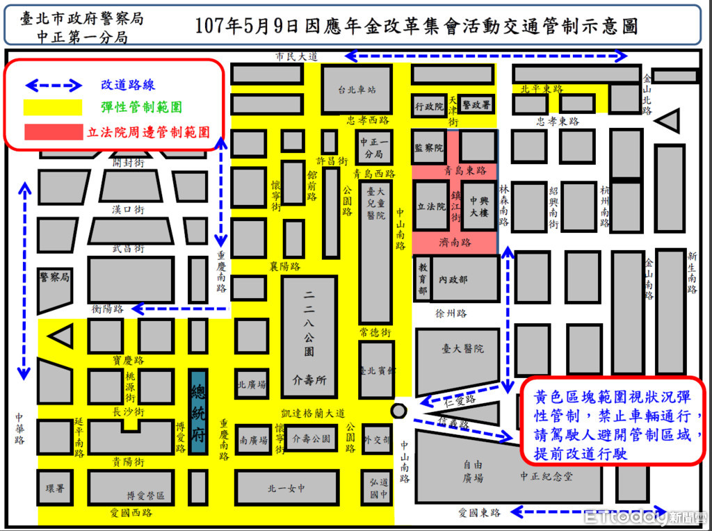 ▲北市警局針對明天將陳情抗議管制立法院周邊道路。(圖/記者邱中岳翻攝)