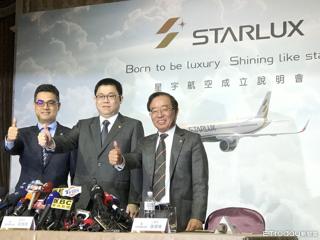 ▲星宇航空董事長張國煒(中)協同總經理翟建華(左)與公關長聶國維(右)舉辦首場成立記者會。(圖/記者賴文萱攝)