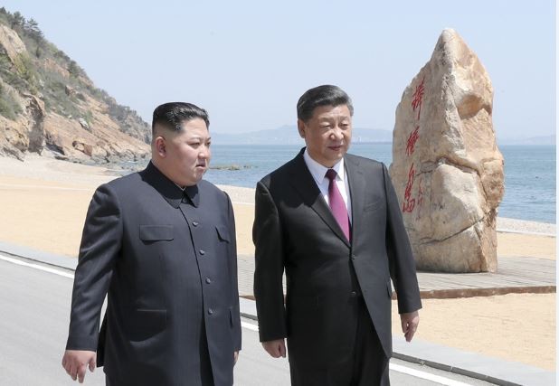 談到朝鮮半島形勢時,習近平指出,「我同委員長同志首次會晤時就此深入交換了意見,達成重要共識。」他說,近段時間,委員長同志在推動半島對話緩和方面作出了積極努力,取得積極成果,在有關各方共同努力下,半島對話緩和勢頭正不斷鞏固,朝著有利於推動政治解決的方向發展,中方支持朝方堅持半島無核化,支持朝美對話協商解決半島問題,願繼續同有關各方一道。
