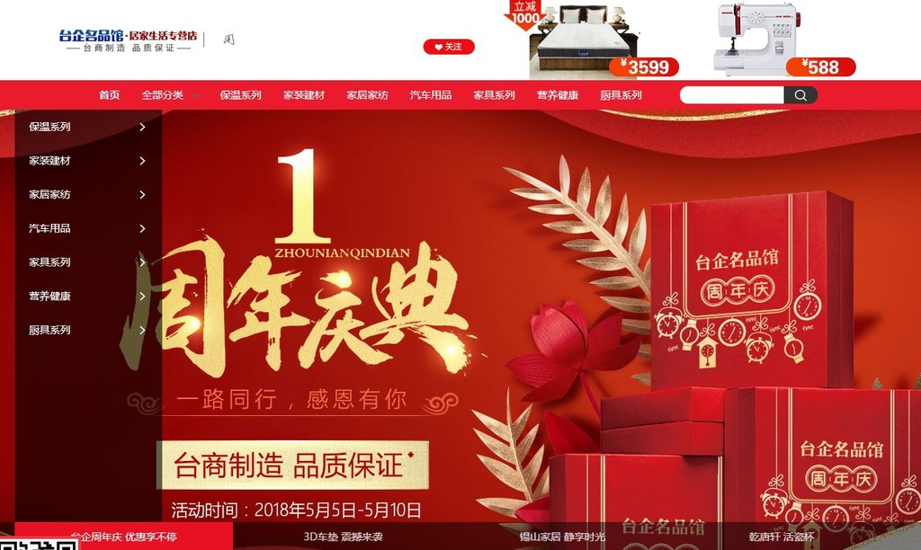 大陸全國台灣同胞投資企業聯誼會(簡稱「台企聯」)會長王屏生指出,在國台辦積極推動以及江蘇省宿遷市與京東商城支援下,「台商走電商」啟動暨「京東.台企名品館」上線儀式,去年5月8日在宿遷市舉辦。一年後的今天,已經成功協助290家台商企業免費在「京東.台企名品館」上線銷售,上傳的商品達7,000多個,目前進駐的商品基本上都是由大陸台商生產且擁有自主品牌。