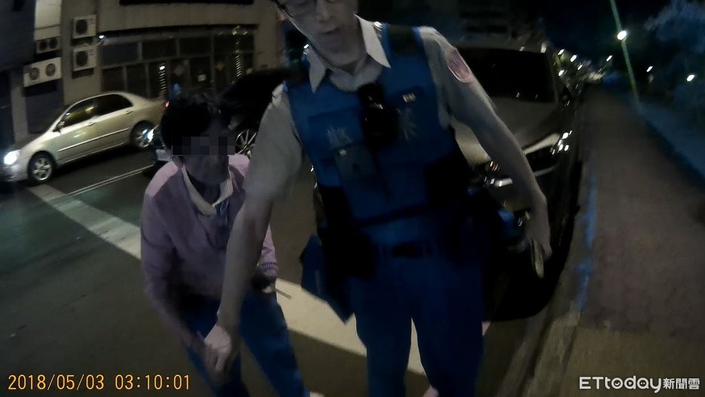▲患有失智症的潘婦蹲在路口引起巡邏員警上前關切。