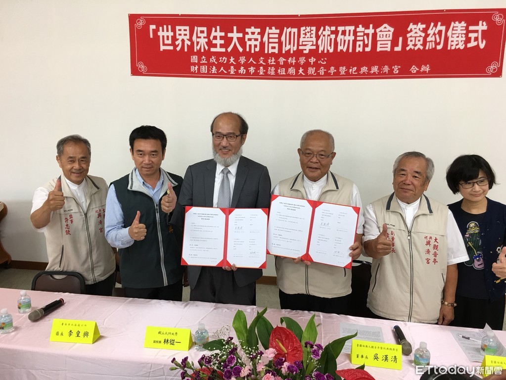 ▲台疆祖廟大觀音亭暨祀典興濟宮,與成功大學人文社會科學中心,今年擴大舉辦「世界保生大帝信仰學術研討會」,10日上午舉辦合作簽約儀式。(圖/記者林悅攝)