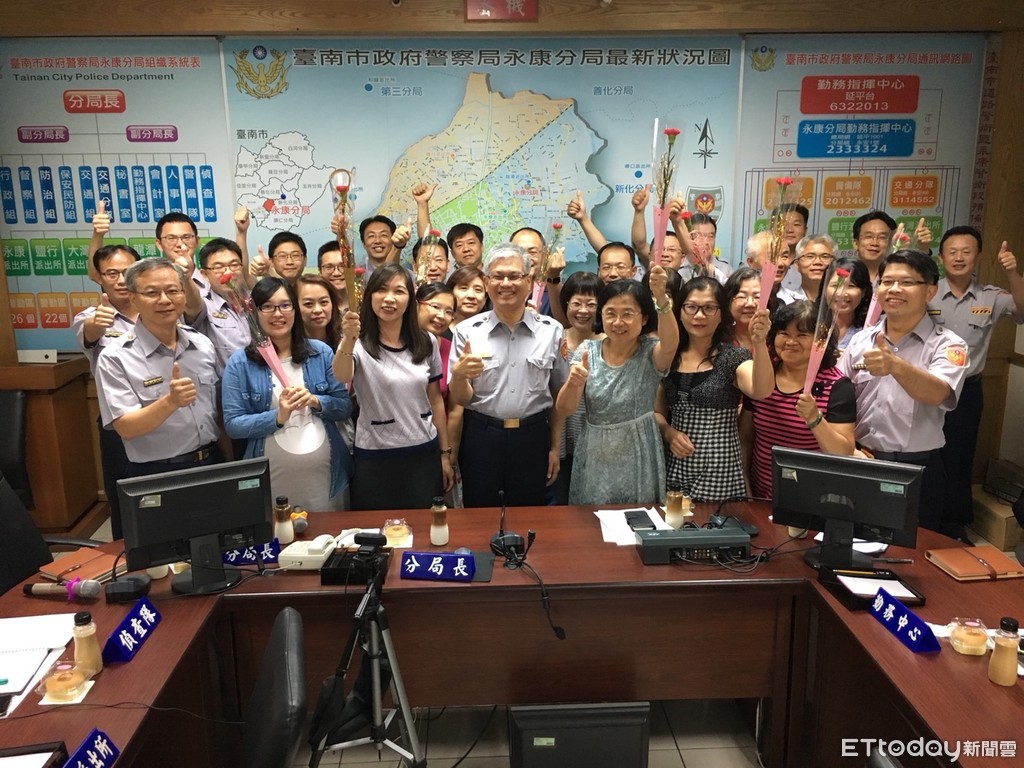為歡慶即將到來的母親節,台南市警永康分局長戴崇贒,特贈送已婚女性同仁康乃馨與小禮物,讓整個分局頓時充滿母愛光輝,並感謝所有女性同仁堅守崗位、協助推動警政工作。