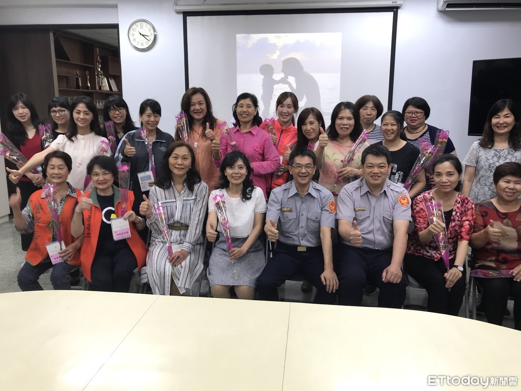 ▲永和警致贈康乃馨向局內女性同仁致意。(圖/記者林煒傑翻攝)