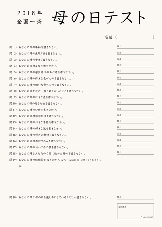 最後老師在台上說:這份試卷不回收批閱,請各自打電話回家跟你的媽媽確認之後評點分數。