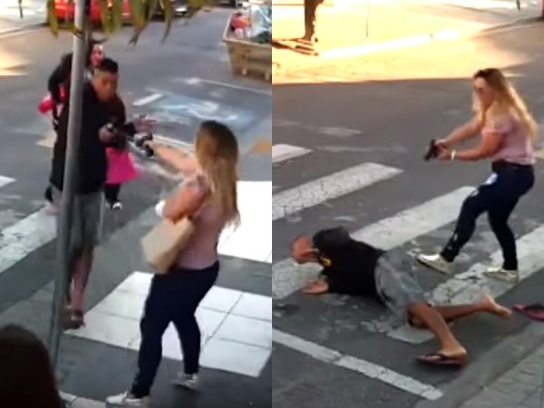 ▲巴西一名搶匪持槍要行搶婦孺時,遭一名母親擊斃。(圖/翻攝自YouTube)