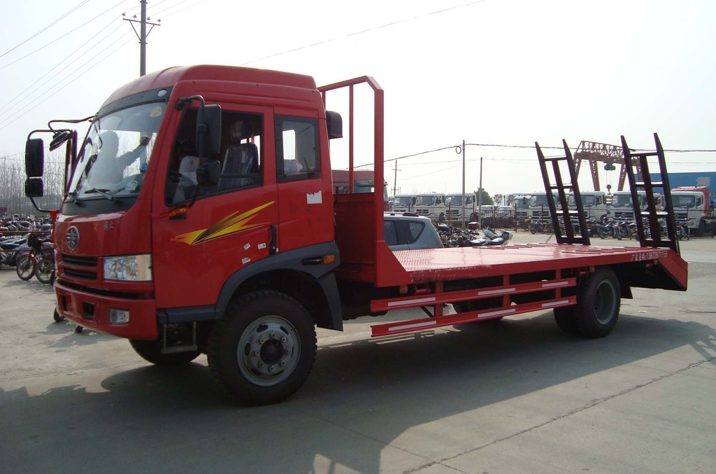 ▼平板運輸車主要用於運輸一些像挖掘機、裝載機、收割機等的不可拆卸物體。(圖/翻攝自百度百科)