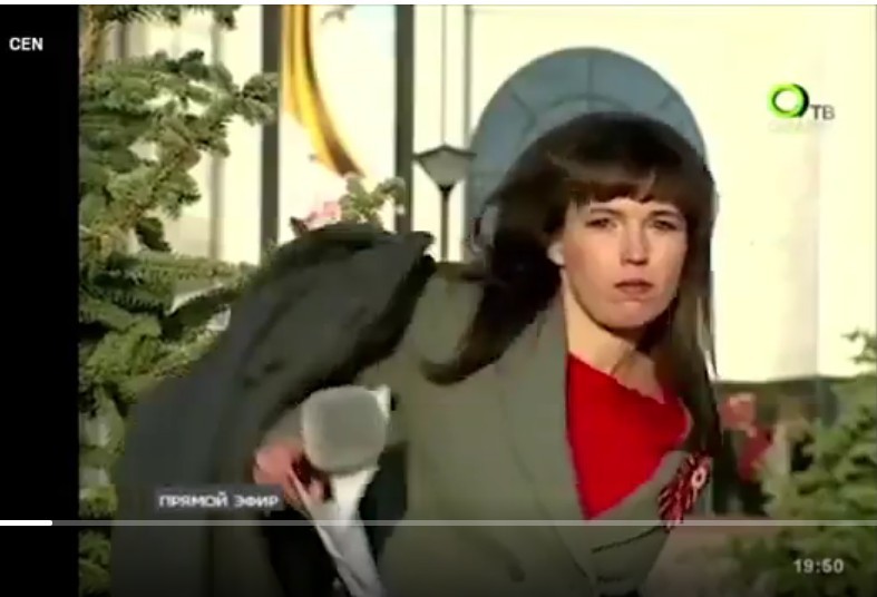 俄羅斯女記者雷亞沃娃(Maria Ryabova)日前在南薩哈林斯克市進行報導,由於天氣寒冷,等待的空檔她原本穿著厚重外套,沒想到突然被告知進行直播,只能急忙脫掉外套,一個轉身後立即呈現專業播報,趣味畫面在網路上獲得瘋傳。