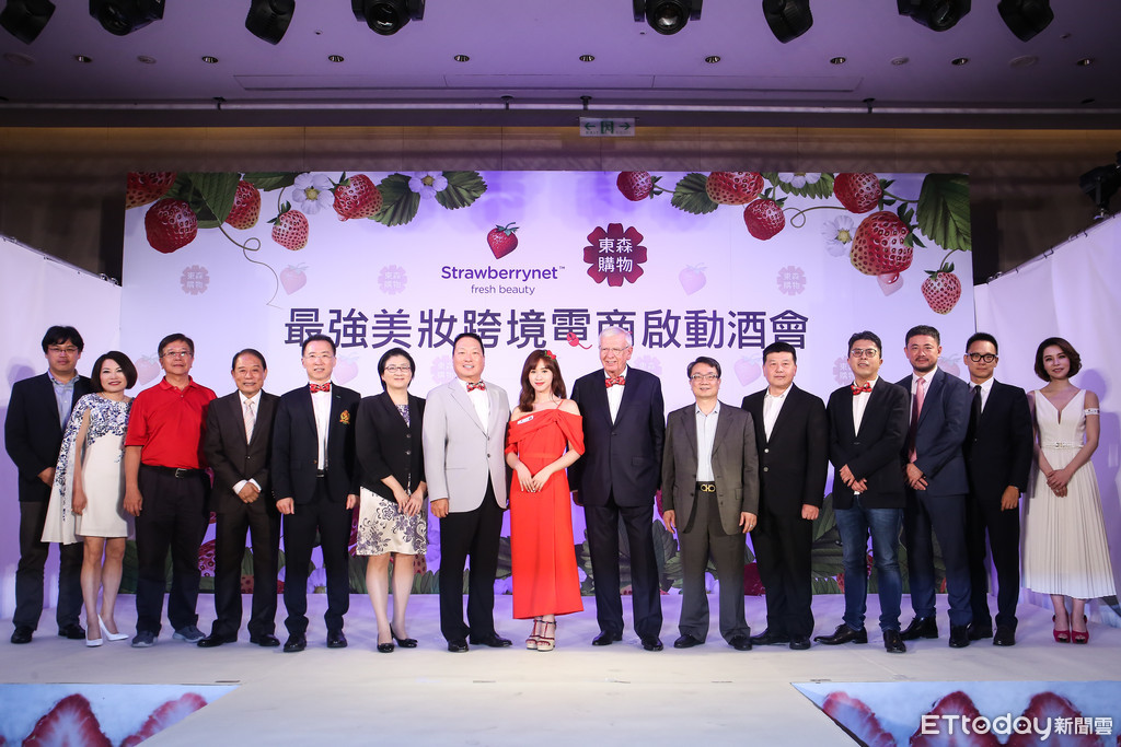 ▲東森購物與草莓網15日舉行啟動酒會,共同打造最強美妝跨境電商。(圖/記者周宸亘攝)