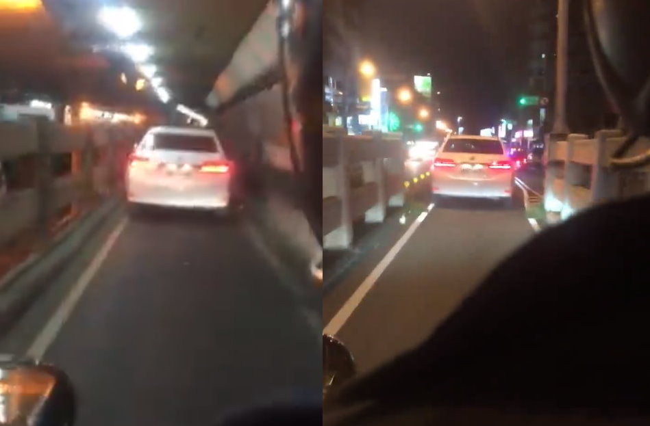 ▲▼機車乘客一路拍下Altis開車機車道,直呼太強了。(圖/翻攝爆料公社粉絲團)