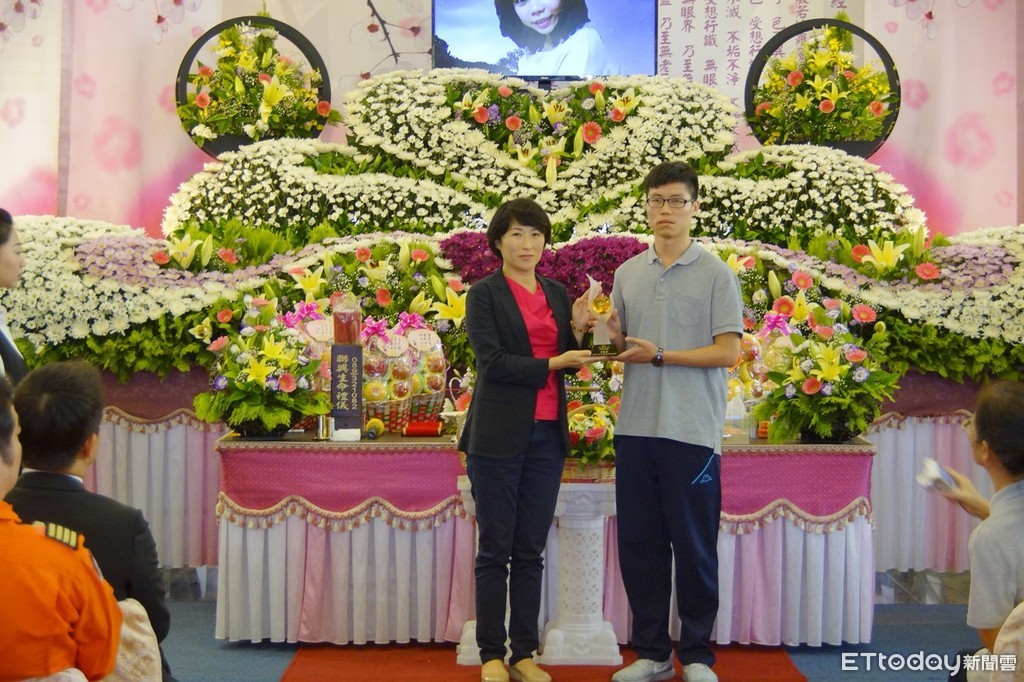 ▲黑鷹直升機失事殉職護理師蔡邑敏追思會上,國民黨台東縣長候選人饒慶鈴代表頒發南丁格爾特殊貢獻獎。(圖/饒慶鈴辦公室提供 下同)