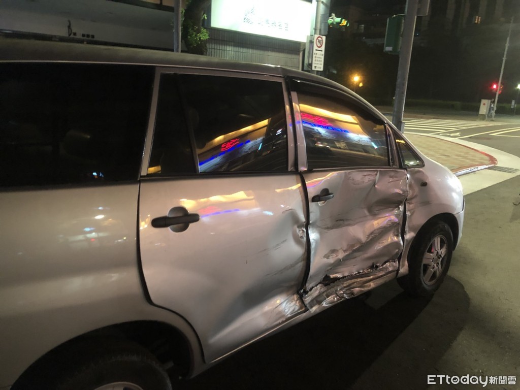 ▲▼消防車救災途中意外撞上小客車,造成小客車右側車門全毀,留上一道刮痕。(圖/記者趙永博攝)