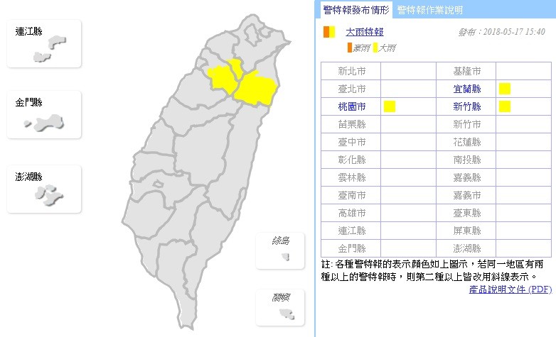 ▲氣象局針對宜蘭、桃園、新竹發布大雨特報。(圖/中央氣象局)